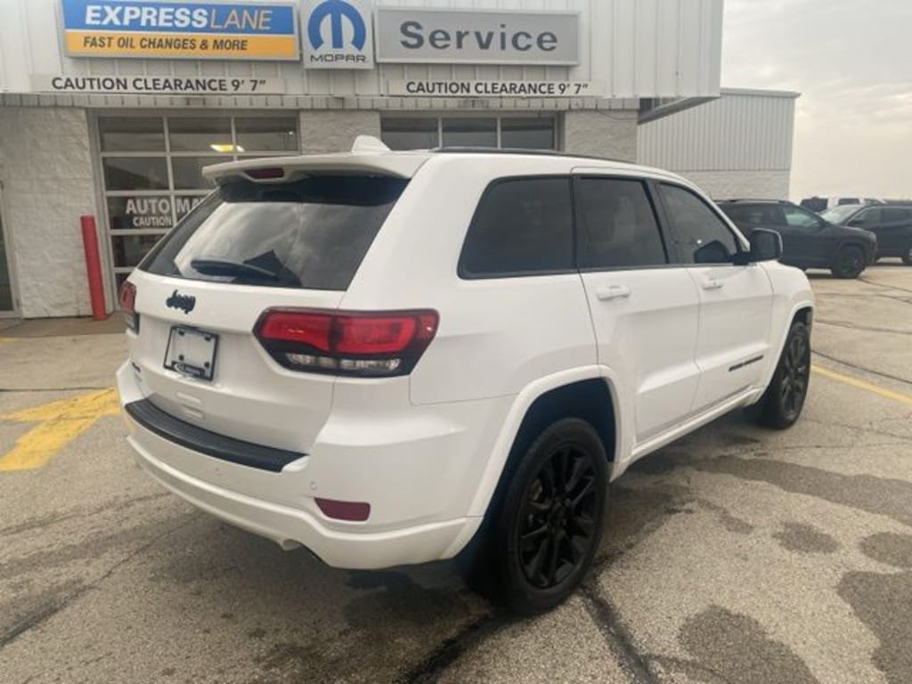 READY SOON!! LOCAL TRADE IN!! JEEP FACTORY CERTIFIED PRE-OWNED VEHICLE!! BRIGHT WHITE 2018 GRAND CHEROKEE ALTITUDE 4X4 WITH PREMIUM HEATED LEATHER/SUEDE BUCKET SEATS, HEATED LEATHER WRAPPED STEERING WHEEL, 8.4" TOUCHSCREEN NAVIGATION INFOTAINMENT CENTER, BACKUP CAMERA, REMOTE START SYSTEM, POWER LIFTGATE, GLOSS BLACK 20" WHEELS AND A FACTORY BACKED WARRANTY!!