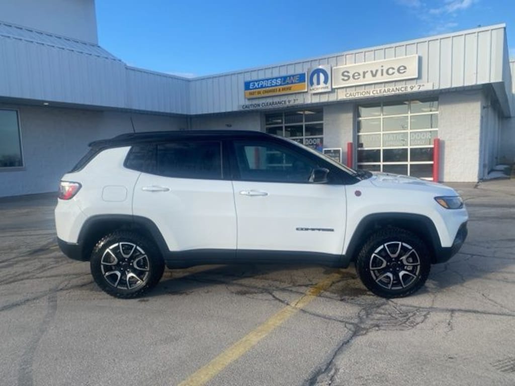 READY SOON!! TRAILHAWK OFF ROAD!! JEEP CERTIFIED PRE-OWNED VEHICLE!! BRIGHT WHITE 2025 COMPASS TRAILHAWK 4X4 WITH OFF ROAD SUSPENSION, SKID PLATES, TOW HOOK, BLACK/RUBY RED PREMIUM TRAILHAWK BUCKET SEATS, 10.1" TOUCHSCREEN INFOTAINMENT CENTER, APPLE CARPLAY/GOOGLE ANDROID AUTO, SIRIUSXM SATELLITE RADIO, PARKVIEW REAR BACKUP CAMERA, REAR PARK ASSIST, BLIND SPOT MONITORING, ADAPTIVE CRUISE CONTROL, JEEP ALL WEATHER FLOOR LINERS, 17" TRAILHAWK ALUMINUM WHEELS EITH 215/65R17 ALL TERRAIN TIRES, CLEAN CARFAX VEHICLE HISTORY REPORT AND THIS JEEP IS A JEEP CERTIFIED PRE-OWNED VEHICLE WITH FACTORY BACKED WARRANTY UNTIL JANUARY 2032 OR 100,000 MILES!!