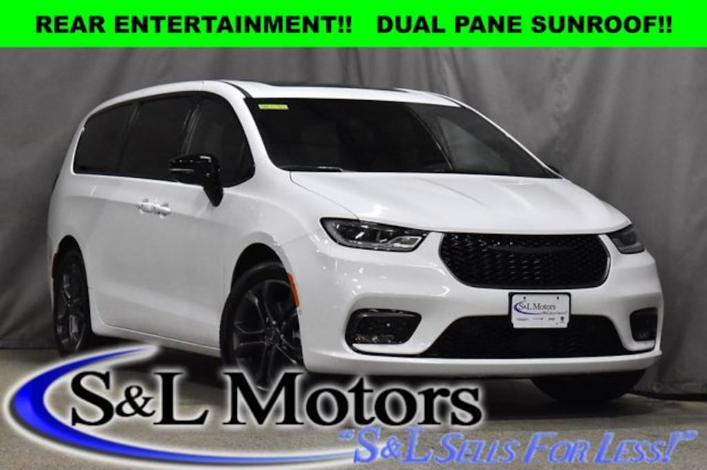 REAR ENTERTAINMENT AND DUAL PANE PANORAMIC SUNROOF!! BRIGHT WHITE 2026 PACIFICA SELECT 100TH ANNIVERSARY EDITION WITH THE UCONNECT THEATER FAMILY GROUP II, DUAL PANE PANORAMIC POWER SUNROOF, HEATED PREMIUM LEATHER BUCKET SEATS, POWER DRIVER AND PASSENGER SEATS, HEATED LEATHER WRAPPED STEERING WHEEL, 10.1" TOUCHSCREEN NAVIGATION INFOTAINMENT CENTER, 506 WATT/13 SPEAKER ALPINE PREMIUM AUDIO SYSTEM, DUAL SEATBACK FLAT SCREENS, AMAZON FIRE TV, DUAL PANE PANORAMIC POWER SUNROOF AND 20" ALUMINUM WHEELS!