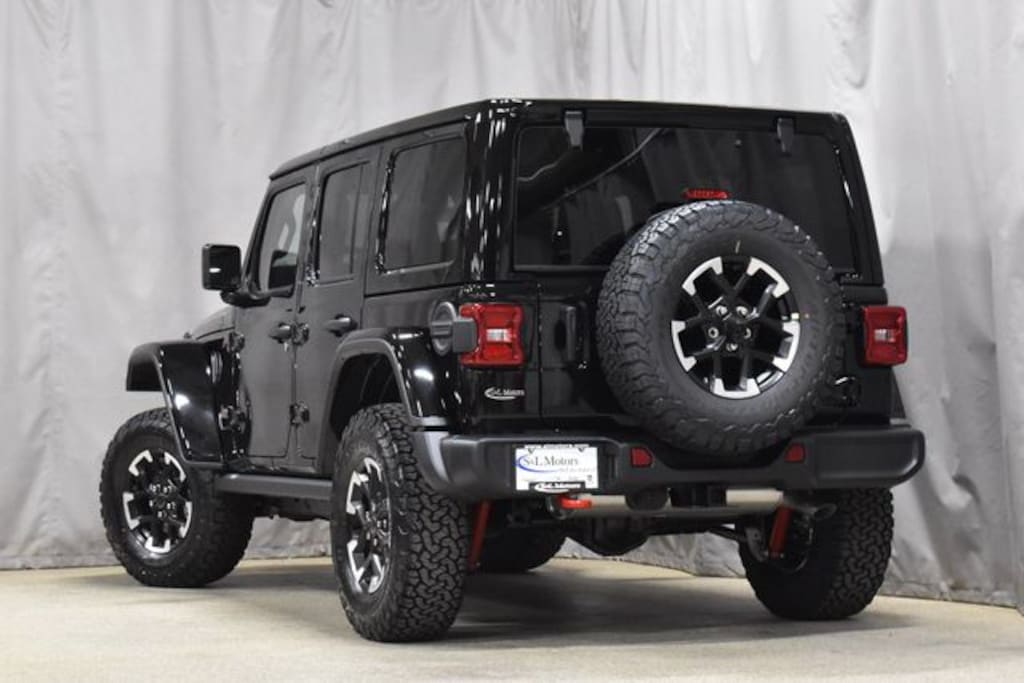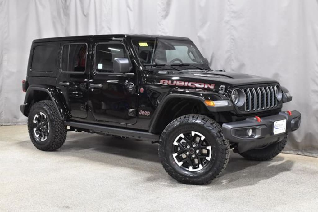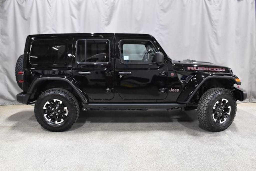 JET BLACK 2026 WRANGLER RUBICON 4X4 WITH THE 3.6L 24 VALVE V6, HEATED PREMIUM NAPPA LEATHER BUCKET SEATS, HEATED STEERING WHEEL, POWER DRIVER AND PASSENGER SEATS, 12.3" TOUCHSCREEN INFOTAINMENT CENTER, ALPINE PREMIUM AUDIO SYSTEM, BODY COLOR 3 PIECE REMOVABLE HARDTOP AND FENDER FLARES, REMOTE START SYSTEM AND 17" MACHINED ALUMINUM WHEELS WITH BLACK POCKETS!
