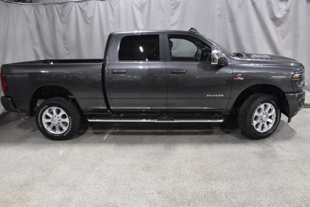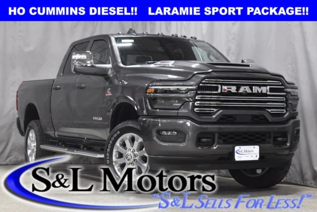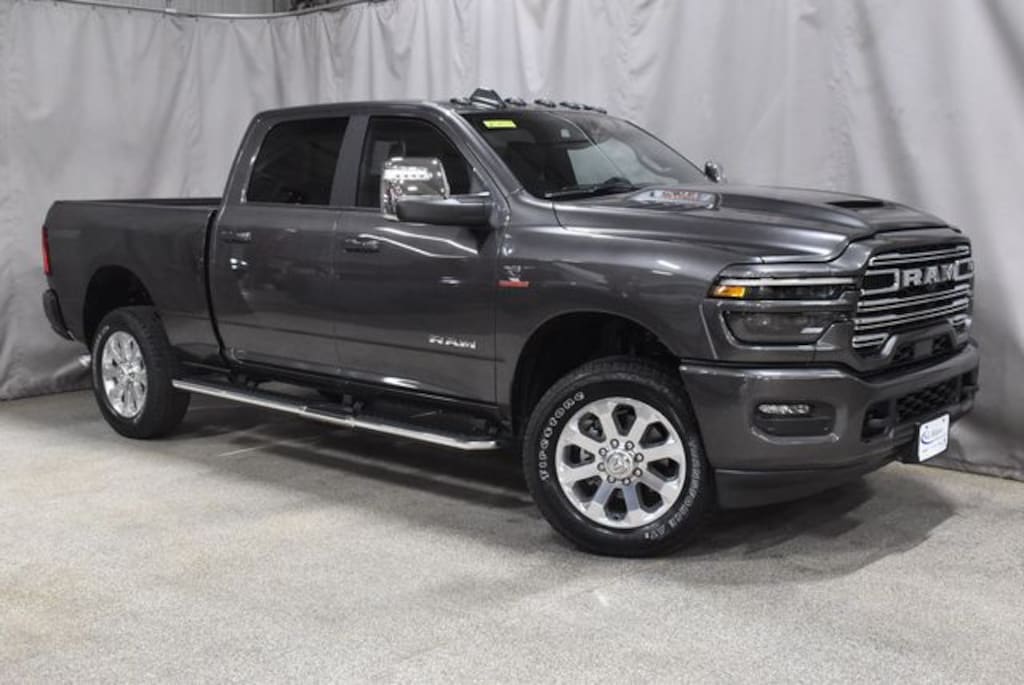 GRANITE CRYSTAL METALLIC 2025 RAM 2500HD LARAMIE SPORT CREW CAB 4X4 WITH THE ALL NEW HIGH OUTPUT CUMMINS TURBO DIESEL, 8-SPEED AUTOMATIC TRANSMISSION, LARAMIE LEVEL 1 PLUS GROUP, HEATED AND COOLED PREMIUM LEATHER, 12" TOUCHSCREEN NAVIGATION, ALPINE PREMIUM AUDIO SYSTEM, 5TH WHEEL/GOOSENECK PREP, CHROME WHEEL TO WHEEL SIDE STEPS, SPORT PERFORMANCE HOOD, 20" POLISHED ALUMINUM WHEELS AND SNOW PLOW READY!! 6.7L High Output Cummins Turbo Diesel, 8-Speed HD Automatic Transmission, Anti-Spin Rear Differential Axle, Transfer Case Skid Plate, 4WD, Heated And Ventilated Premium Leather Bucket Seats, Heated Leather Wrapped Steering Wheel, Power Adjustable Pedals, 12" Touchscreen Navigation Infotainment Center, ALPINE 9-Speaker Premium Audio System With Subwoofer, Dual Wireless Charging Pads, Backup And Cargo View Cameras, Power Sliding Rear Window, Rear Window Defroster, Spray In Bedliner, LED Bed Lights, 5th Wheel/Gooseneck Prep Package, Class V Trailer Hitch, Chrome Wheel To Wheel Side Steps, Sport Performance Hood, 20" Polished Aluminum Wheels!