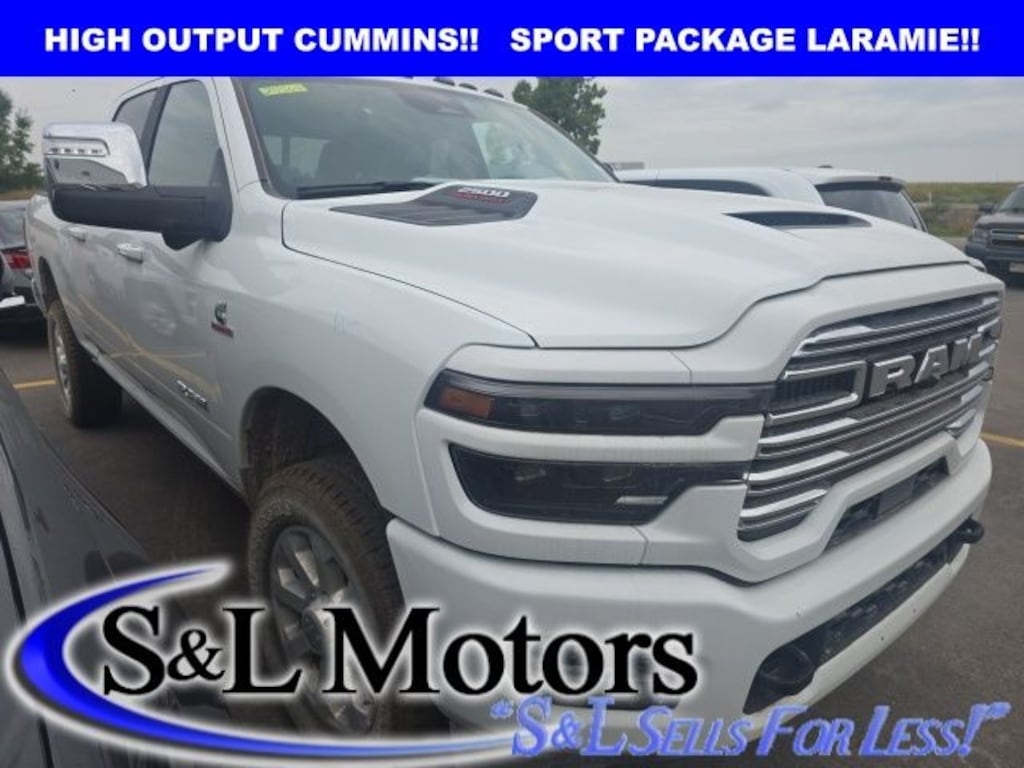 JUST IN!! BRIGHT WHITE 2025 RAM 2500HD LARAMIE SPORT CREW CAB 4X4 WITH THE HIGH OUTPUT CUMMINS TURBO DIESEL ENGINE, LARAMIE LEVEL 2 PLUS GROUP, HEATED AND COOLED PREMIUM LEATHER BUCKET SEATS, POWER SUNROOF, 14.4" TOUCHSCREEN NAVIGATION INFOTAINMENT CENTER, HARMON KARDON PREMIUM AUDIO SYSTEM, 5TH WHEEL/GOOSENECK PREP, SPRAY IN BEDLINER, POWER RUNNING BOARDS, TOWING TECHNOLOGY GROUP, SPORT PERFORMANCE HOOD, POLISHED 20" ALUMINUM WHEELS AND WARRANTY TO 100,000 MILES!