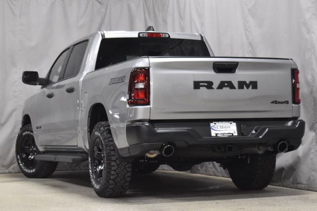 WARLOCK OFF ROAD EDITION!! BILLET SILVER METALLIC 2026 RAM 1500 WARLOCK CREW CAB 4X4!! 3.0L Hurricane Twin Turbo I6, 8-Speed Automatic Transmission, Selec-Speed Control, Electronic Locking Rear Axle, 4WD, Raised Ride Height, Performance Shock Absorbers, Skid Plates, Premium Cloth 40/20/40 Split Bench Seat With Fold Down Center Console, 8.4" Touchscreen Infotainment Center, ParkView Rear Backup Camera, Adaptive Cruise Control, Blind Spot Monitoring, ParkSense Front And Rear Park Assist, Power Sliding Rear Window, Black Tubular Side Steps By MOPAR, Integrated Trailer Brake Controller, Class IV Trailer Hitch, 18" Black Aluminum Wheels With LT275/70R18 All Terrain Tires AND Ram's 10 Year/100,000 Mile Factory Warranty!!