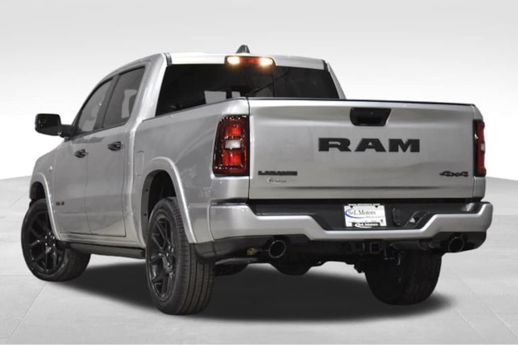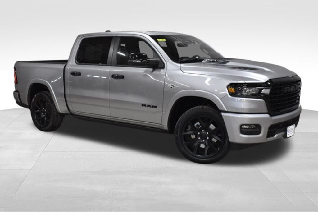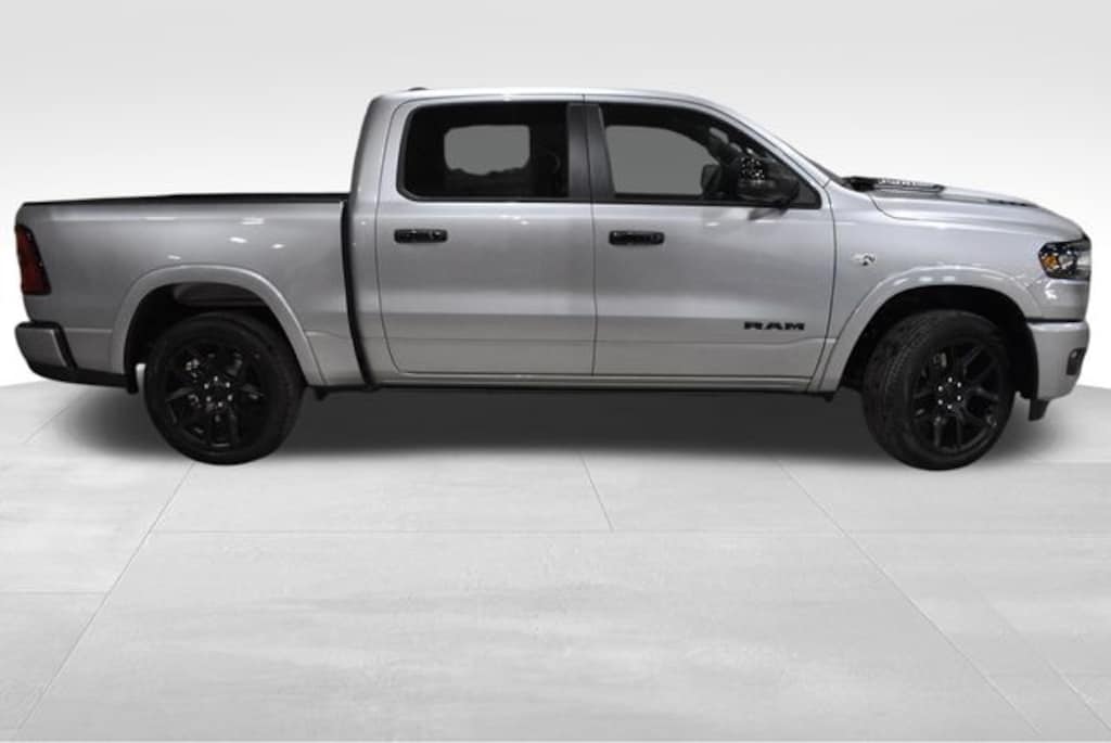 HEMI V8 POWERED!! BILLET SILVER METALLIC 2026 RAM 1500 LARAMIE NIGHT EDITION CREW CAB 4X4 WITH THE 5.7L HEMI V8, LARAMIE LEVEL 2 GROUP, DUAL PANE PANORAMIC SUNROOF, HEATED AND COOLED PREMIUM LARAMIE LEATHER BUCKET SEATS, HEATED SECOND ROW SEATING, HEATED STEERING WHEEL, 14.4" TOUCHSCREEN NAVIGATION INFOTAINMENT CENTER, FRONT PASSENGER INTERACTIVE SCREEN, HARMON KARDON 19-SPEAKER PREMIUM AUDIO SYSTEM, POWER DEPLOYABLE RUNNING BOARDS, SPORT PERFORMANCE HOOD, BED UTILITY GROUP, SPRAY IN BEDLINER, DEPLOYABLE BED STEP, LED BED LIGHTS, EXTERIOR 115V AC OUTLET, 22" BLACK ALLOY WHEELS AND RAM'S 10 YEAR/100,000 MILE FACTORY WARRANTY!!