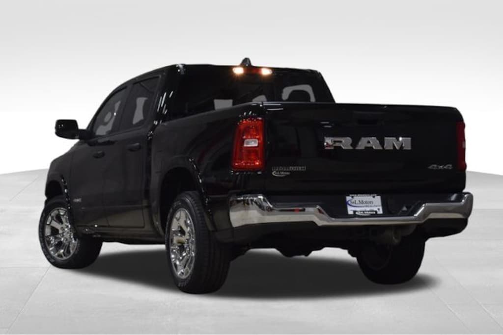 DIAMOND BLACK CRYSTAL 2026 RAM 1500 BIG HORN CREW CAB 4X4 WITH HEATED BUCKET SEATS, HEATED LEATHER WRAPPED STEERING WHEEL, 8.4" TOUCHSCREEN INFOTAINMENT CENTER, BACKUP CAMERA, POWER SLIDING REAR WINDOW, CHROME 20" ALUMINUM WHEELS!!