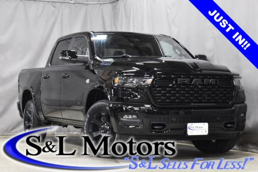 HEMI V8 POWERED!! DIAMOND BLACK CRYSTAL 2026 RAM 1500 BIG HORN NIGHT EDITION CREW CAB 4X4 WITH THE LEGENDARY HEMI V8 ENGINE, BIG HORN LEVEL 2 GROUP, HEATED PREMIUM BUCKET SEATS/STEERING WHEEL, 12" TOUCHSCREEN NAVIGATION INFOTAINMENT CENTER, ALPINE 9-SPEAKER PREMIUM AUDIO SYSTEM, 12" TFT PREMIUM COLOR INSTRUMENT CLUSTER, REMOTE START SYSTEM, POWER SLIDING REAR WINDOW, FRONT MOUNTED TOW HOOKS, SKID PLATES, TRAILERING PACKAGE, 20" SEMI GLOSS BLACK ALUMINUM WHEELS AND RAM'S 10 YEAR/100,000 MILE FACTORY WARRANTY!!