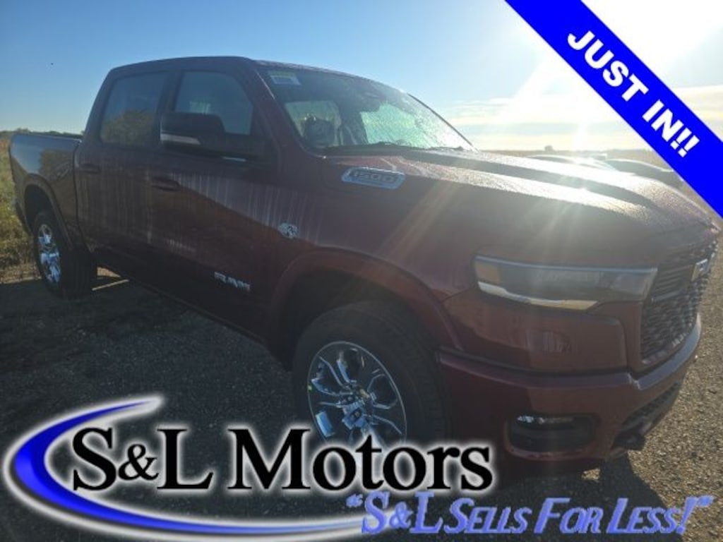 HEMI V8 POWERED!! DELMONICO RED PEARL 2026 RAM 1500 BIG HORN SPORT CREW CAB 4X4 WITH THE LEGENDARY HEMI V8 ENGINE, HEATED PREMIUM BUCKET SEATS/STEERING WHEEL, 12" TOUCHSCREEN NAVIGATION INFOTAINMENT CENTER, ALPINE 9-SPEAKER PREMIUM AUDIO SYSTEM, 12" TFT PREMIUM COLOR INSTRUMENT CLUSTER, MOPAR ALL WEATHER FLOOR MATS, TOW HOOKS, SKID PLATES, TRAILERING PACKAGE, 20" CHROME ALUMINUM WHEELS AND RAM'S 10 YEAR/100,000 MILE FACTORY WARRANTY!!