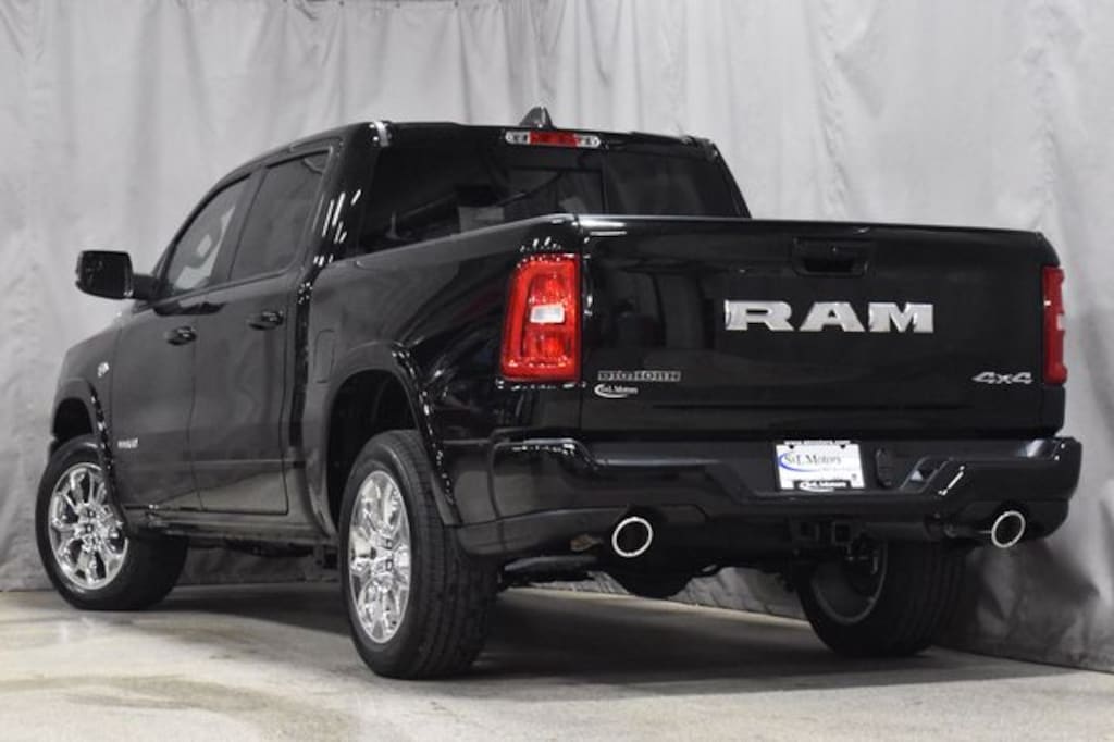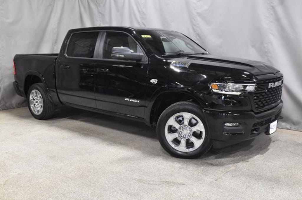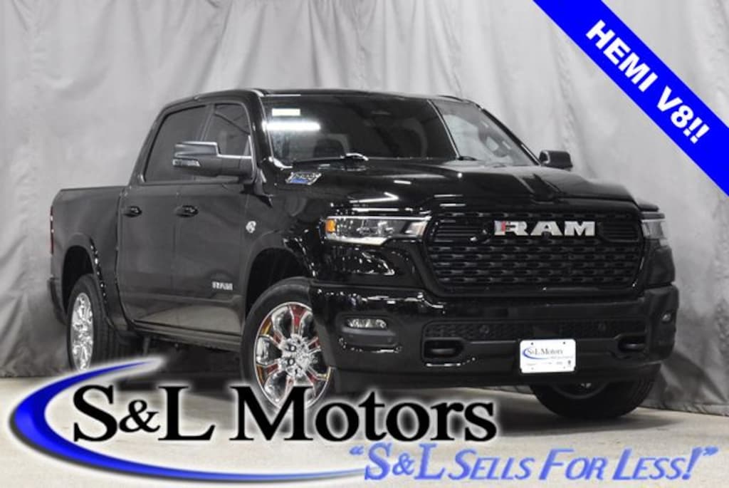 HEMI V8 POWERED!! DIAMOND BLACK CRYSTAL 2026 RAM 1500 BIG HORN SPORT CREW CAB 4X4 WITH THE LEGENDARY 5.7L HEMI V8 ENGINE, BIG HORN LEVEL 2 / PROTECTION / BED UTILITY GROUPS, HEATED PREMIUM BUCKET SEATS/STEERING WHEEL, 12" TOUCHSCREEN NAVIGATION INFOTAINMENT CENTER, ALPINE 9-SPEAKER PREMIUM AUDIO SYSTEM, TFT UPGRADED INSTRUMENT CLUSTER, REMOTE START SYSTEM, SPRAY IN BEDLINER, LED BED LIGHTS, DEPLOYABLE BED STEP, CHROME 20" ALUMINUM WHEELS, TRAILERING PACKAGE AND RAM'S 10 YEAR/100,000 MILE FACTORY WARRANTY!