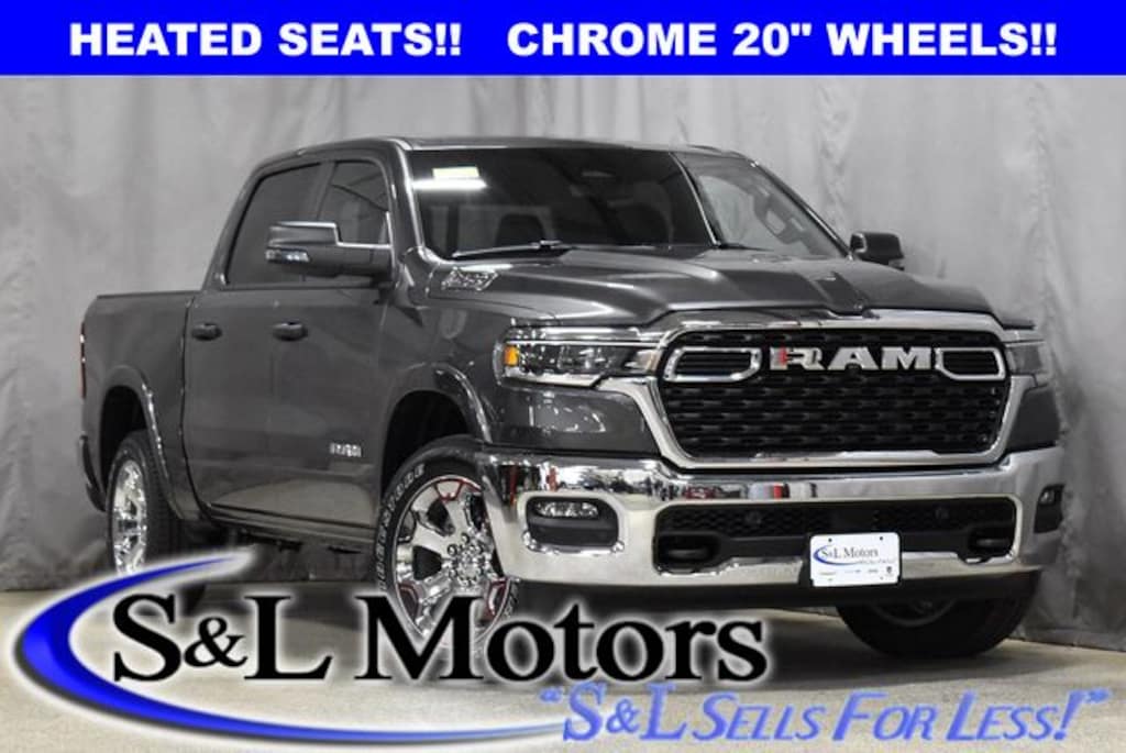 GRANITE CRYSTAL METALLIC 2026 RAM 1500 BIG HORN CREW CAB 4X4 WITH HEATED BUCKETS SEATS/STEERING WHEEL, TOUCHSCREEN INFOTAINMENT CENTER, PROTACTION GROUP, CLASS IV TRAILER HITCH, CHROME 20" WHEELS AND THE RAM 10 YEAR/100,000 MILE FACTORY WARRANTY!! 3.0L Hurricane Twin Turbo I6, 8-Speed Automatic Transmission, 4WD, Heated Premium Bucket Seats, Heated Leather Wrapped Steering Wheel, Power 8-Way Driver Seat, Backup Camera, Front And Rear ParkSense Park Assist, Blind Spot Monitoring And Cross Path Detection, Remote Start System, Power Sliding Rear Window, Front And Rear All Weather Floor Liners, 20" Chrome Aluminum Wheels And RAM'S 10 YEAR/100,000 MILE FACTORY WARRANTY!!