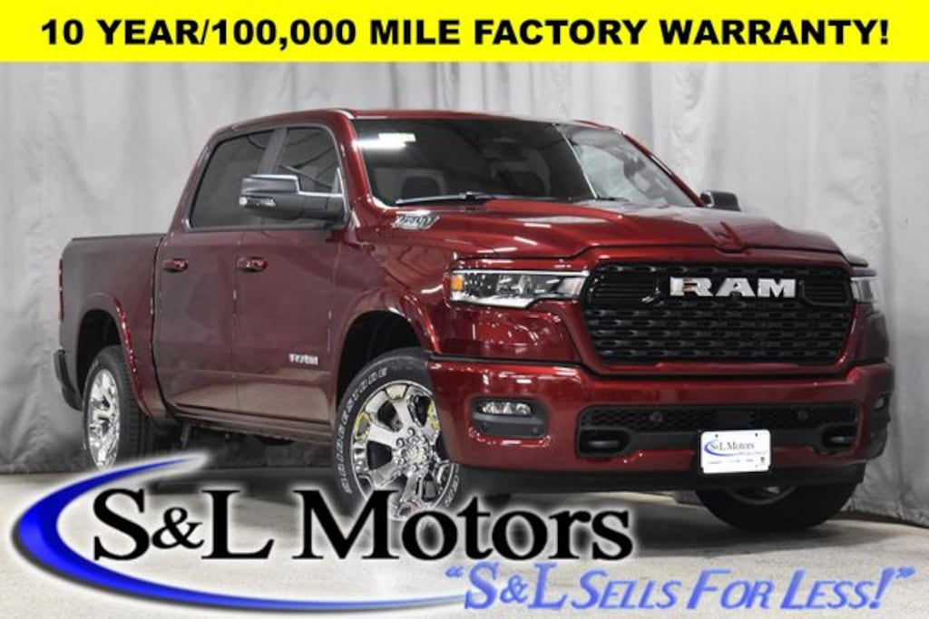 DELMONICO RED PEARL 2025 RAM 1500 BIG HORN SPORT CREW CAB 4X4 WITH HEATED BUCKET SEATS/STEERING WHEEL, 8.4" TOUCHSCREEN INFOTAINMENT CENTER, PROTECTION GROUP AND CHROME 20" WHEELS!! 3.0L Hurricane Twin Turbo I6, 8-Speed Automatic Transmission, 4WD, Heated Premium Bucket Seats, Heated Leather Wrapped Steering Wheel, Power Driver Seat, Power Adjustable Pedals, 8" Touchscreen Infotainment Center, ParkView Rear Backup Camera, ParkSense Front and Rear Park Assist, Blind Spot Monitoring, Power Sliding Rear Window, Integrated Trailer Brake Controller, Class IV Trailer Hitch, Skid Plates, Tow Hooks And Chrome 20" Wheels!!