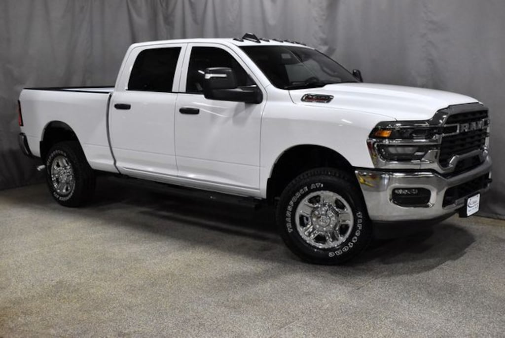 BRIGHT WHITE 2026 RAM 2500HD TRADESMAN CREW CAB 4X4 WITH THE TRADESMAN LEVEL 2 PACKAGE, 12" TOUCHSCREEN NAVIGATION INFOTAINMENT CENTER, SNOW PLOW READY, BLACK TUBULAR SIDE STEPS, CHROME 18" WHEELS AND RAM'S 10 YEAR/100,000 MILE FACTORY WARRANTY!!
