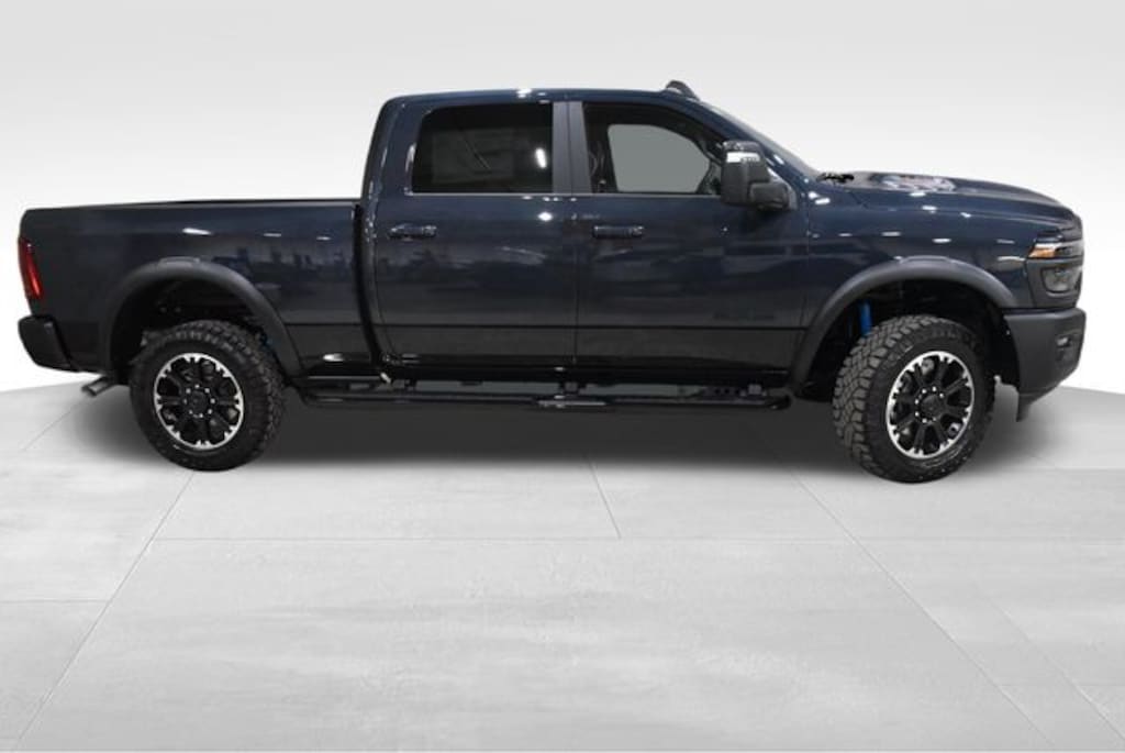 FORGED BLUE METALLIC 2026 RAM 2500HD REBEL CREW CAB 4X4 WITH THE 6.4L HEMI V8 ENGINE, 8-SPEED AUTOMATIC TRANSMISSION, ELECTRONIC LOCKING REAR DIFFERENTIAL AXLE, OFF ROAD SUSPENSION WITH PERFORMANCE TUNED SHOCKS, SPORT PERFORMANCE HOOD, SKID PLATES, HEATED AND COOLED LEATHER REBEL BUCKET SEATS/STEERING WHEEL, 12" TOUCHSCREEN INFOTAINMENT CENTER, ALPINE PREMIUM AUDIO SYSTEM, BACKUP AND CENTER HIGH MOUNTED CAMERAS, 5TH WHEEL/GOOSENECK PREP PACKAGE, PAINTED WHEEL TO WHEEL SIDE STEPS, 20" BLACK/MACHINED ALUMINUM WHEELS AND RAM'S 10 YEAR/100,000 FACTORY WARRANTY!