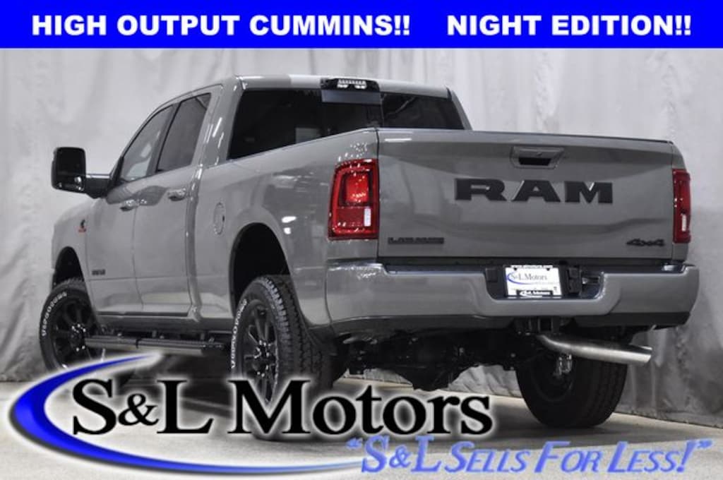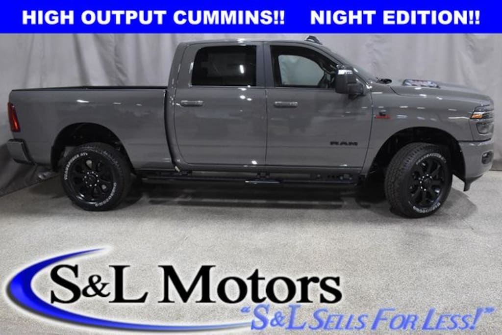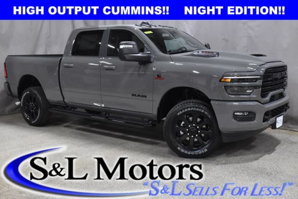 HIGH OUTPUT CUMMINS!! CERAMIC GRAY 2026 RAM 2500HD LARAMIE NIGHT EDITION CREW CAB 4X4 WITH HEATED AND COOLED PREMIUM LEATHER, 12' TOUCHSCREEN NAVIGATION SYSTEM, ALPINE 9-SPEAKER PREMIUM AUDIO SYSTEM, 5TH WHEEL/GOOSENECK PREP, TOWING TECHNOLOGY GROUP, SPORT PERFORMANCE HOOD, SIDE STEPS, SNOW PLOW READY, BLACK 20" WHEELS AND RAM'S 10 YEAR/100,000 MILE FACTORY WARRANTY!! 6.7L High Output Cummins Turbo Diesel, 8-Speed HD Automatic Transmission, Anti-Spin Rear Differential Axle, 4WD, Heated And Ventilated Premium Laramie Leather Bucket Seats, Heated Leather Wrapped Steering Wheel, Power Driver And Passenger Seats, Power Adjustable Pedals, 12" Touchscreen Navigation Infotainment Center, ALPINE 9-Speaker Premium Audio System, Apple CarPlay/Google Android Auto, Dual Wireless Charging Pads, ParkView Rear Backup Camera, Surround View Camera, Trailer Reverse Guidance, Power Sliding Rear Window, Spray In Bedliner, LED Bed Lights, 5th Wheel/Gooseneck Prep Package, Clearance Lamps, Transfer Case Skid Plate, Sport Performance Hood, 20" Black Aluminum Wheels And The Ram 10 Year/100,000 Mile Factory Warranty!