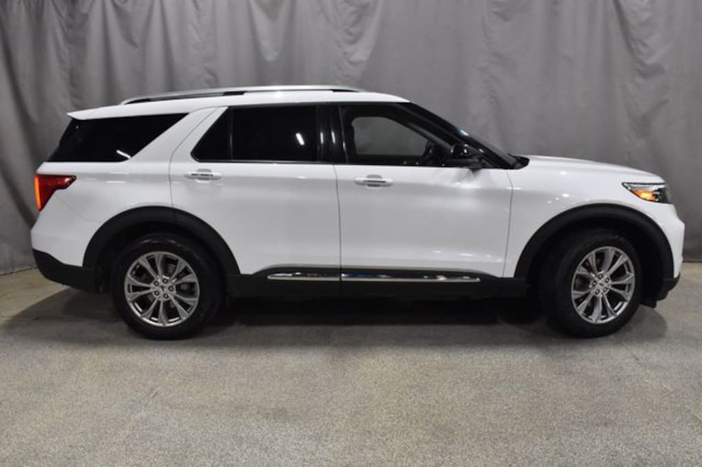 2022 FORD EXPLORER LIMITED 4WD IN STUNNING OXFORD WHITE OVER EBONY LEATHER-TRIMMED SEATING WITH JUST 72,265 MILES. POWERED BY THE 2.3L ECOBOOST I-4 ENGINE PAIRED WITH A SMOOTH 10-SPEED AUTOMATIC TRANSMISSION THIS EXPLORER DELIVERS CONFIDENT PERFORMANCE AND EXCELLENT EFFICIENCY WHETHER YOU ARE CRUISING THE HIGHWAY OR NAVIGATING WINTER ROADS. EQUIPPED WITH THE PREMIUM EQUIPMENT GROUP 301A IT FEATURES A TWIN PANEL MOONROOF BANG AND OLUFSEN PREMIUM AUDIO SYSTEM SYNC 3 WITH APPLE CARPLAY AND ANDROID AUTO VOICE ACTIVATED NAVIGATION 360 DEGREE CAMERA SYSTEM POWER HEATED AND VENTILATED FRONT SEATS HEATED SECOND ROW SEATS HEATED STEERING WHEEL AND TRI-ZONE ELECTRONIC CLIMATE CONTROL. SAFETY AND CONVENIENCE ARE FRONT AND CENTER WITH BLIND SPOT INFORMATION SYSTEM WITH CROSS TRAFFIC ALERT FORWARD COLLISION WARNING WITH BRAKE SUPPORT LANE KEEPING SYSTEM REVERSE SENSING SYSTEM ADAPTIVE CRUISE CONTROL RAIN SENSING WIPERS LED SIGNATURE LIGHTING AUTO HIGH BEAMS AND FRONT AND REAR PARKING SENSORS. EXTERIOR DETAILS INCLUDE 20 INCH PREMIUM PAINTED ALUMINUM WHEELS POWER FOLDING HEATED MIRRORS WITH MEMORY AND TURN SIGNALS HANDS-FREE POWER LIFTGATE PRIVACY GLASS ROOF RAILS AND FOG LAMPS. INSIDE YOUâLL FIND AMBIENT LIGHTING A LOCKING GLOVE BOX MULTIPLE POWER OUTLETS AND SMART STORAGE THROUGHOUT PLUS THIRD ROW SEATING THAT FOLDS FLAT FOR MAXIMUM FLEXIBILITY. THIS EXPLORER LIMITED COMBINES LUXURY TECHNOLOGY AND VERSATILITY MAKING IT THE PERFECT CHOICE FOR FAMILIES AND PROFESSIONALS ALIKE. TURN EVERY DRIVE INTO A FIRST CLASS EXPERIENCE WITH THIS BEAUTIFULLY MAINTAINED ONE OWNER SUV READY FOR ITS NEXT ADVENTURE.