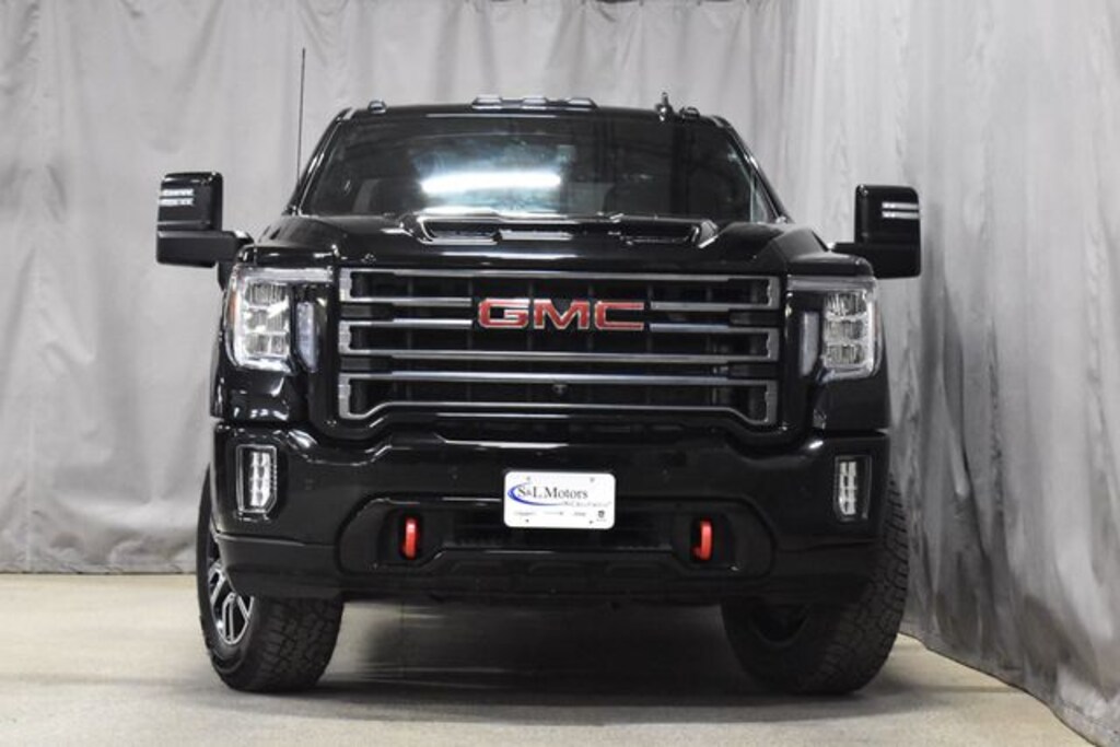 THE 2022 GMC SIERRA 2500HD AT4 CREW CAB 4X4 FINISHED IN STRIKING ONYX BLACK WITH A PREMIUM JET BLACK AND KALAHARI ACCENTED INTERIOR. WITH ONLY 51,398 MILES, THIS ONE-OWNER TRUCK STANDS READY TO WORK HARD AND TURN HEADS EVERYWHERE IT GOES. POWERED BY THE LEGENDARY 6.6L V8 GASOLINE ENGINE MATED TO A HEAVY-DUTY 6-SPEED AUTOMATIC TRANSMISSION, THIS SIERRA DELIVERS THE PERFORMANCE, STRENGTH, AND REFINEMENT THAT DEFINE GMCâS AT4 LINEUP.