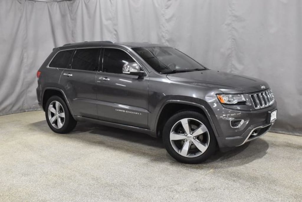 FUEL EFFICIENT ECO-DIESEL POWERED 2014 GRAND CHEROKEE OVERLAND 4X4 WITH HEATED AND VENTILATED PREMIU LEATHER BUCKET SEATS, HEATED SECOND ROW SEATING, HEATED STEERING WHEEL, 8.4" TOUCHSCREEN NAVIGATION INFOTAINMENT CENTER, ALPINE PREMIUM AUDIO SYSTEM, POWER LIFTGATE, ADAPTIVE CRUISE CONTROL, BACKUP CAMERA, BLIND SPOT MONITORING, REAR SEAT DVD ENTERTAINMENT SYSTEM, QUADRA-LIFT 4 CORNER AIR SUSPENSION, 20" ALUMINUM WHEELS AND A CLEAN CARFAX VEHICLE HISTORY REPORT!!
