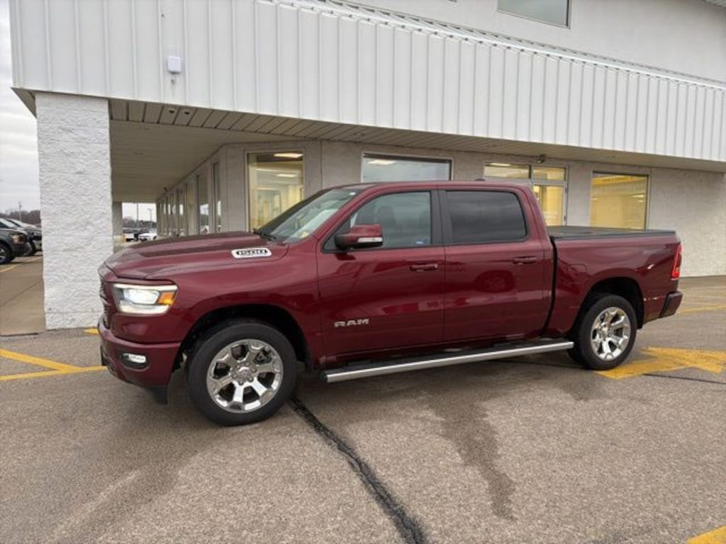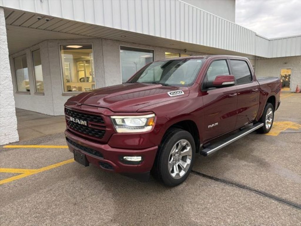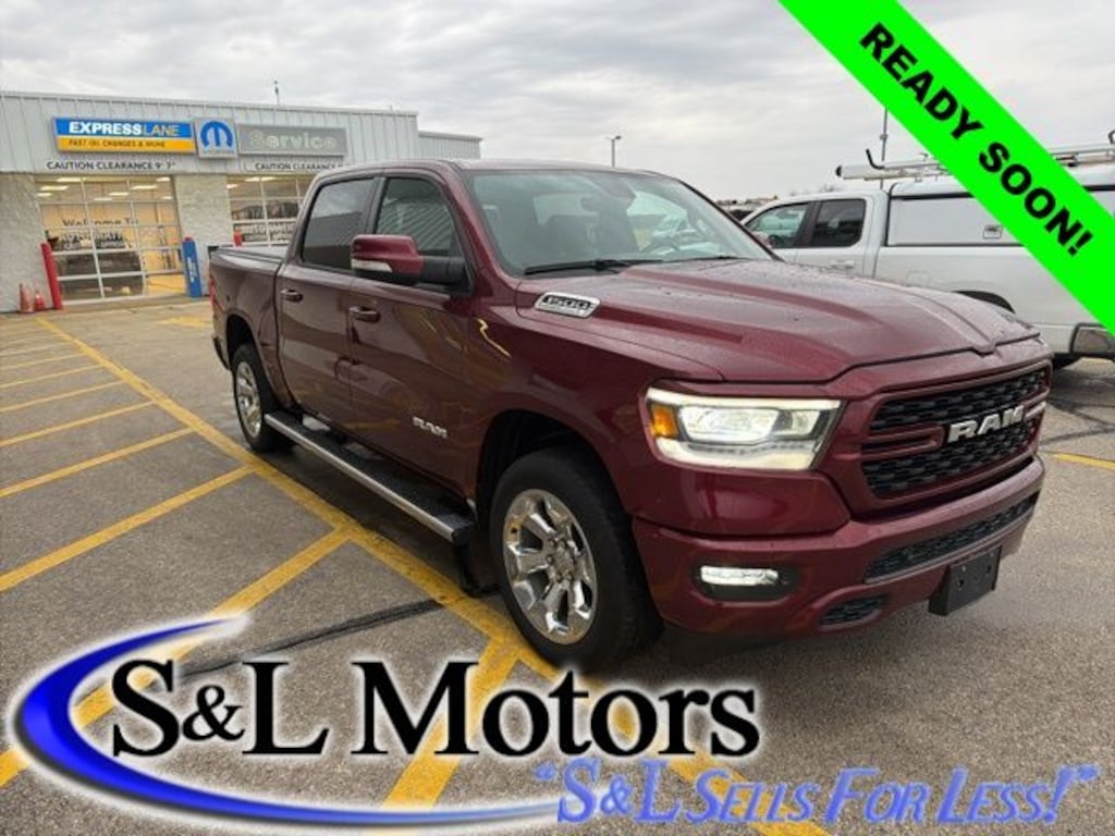 READY SOON!! RAM FACTORY CERTIFIED PRE-OWNED VEHICLE!! S&L MOTORS IS EXCITED TO PRESENT THIS LOCAL ONE OWNER TRADE IN!! DELMONICO RED PEARL 2022 RAM 1500 BIG HORN SPORT CREW CAB 4X4 WITH THE 5.7L HEMI V8 ENGINE, 8-SPEED AUTOMATIC TRANSMISSION, 4WD, BIG HORN LEVEL 2 GROUP, HEATED PREMIUM BUCKET SEATS, HEATED LEATHER WRAPPED STEEIRNG WHEEL, POWER 8-WAY DRIVER SEAT, POWER ADJUSTABLE PEDALS, 8.4" TOUCHSCREEN NAVIGATION INFOTAINMENT CENTER, APPLE CARPLAY/GOOGLE ANDROID AUTO, REMOTE START SYSTEM, INTEGRATED TRAILER BRAKE CONTROLLER, POWER SLIDING REAR WINDOW, FRONT AND REAR MOPAR ALL WEATHER FLOOR LINERS, 33 GALLON FUEL TANK, TONNEAU COVER, CLASS IV TRAILER HITCH, POLISHED STAINLESS MOPAR WHEEL TO WHEEL SIDE STEPS, 20" CHROMEALUMINUM WHEELS, CLEAN ONE OWNER CARFAX VEHICLE HISTORY REPORT AND RAM CERTIFIED PRE-OWNED VEHICLE WITH FACTORY BACKED WARRANTY UNTIL JANUARY 2030 OR 100,000 MILES!!