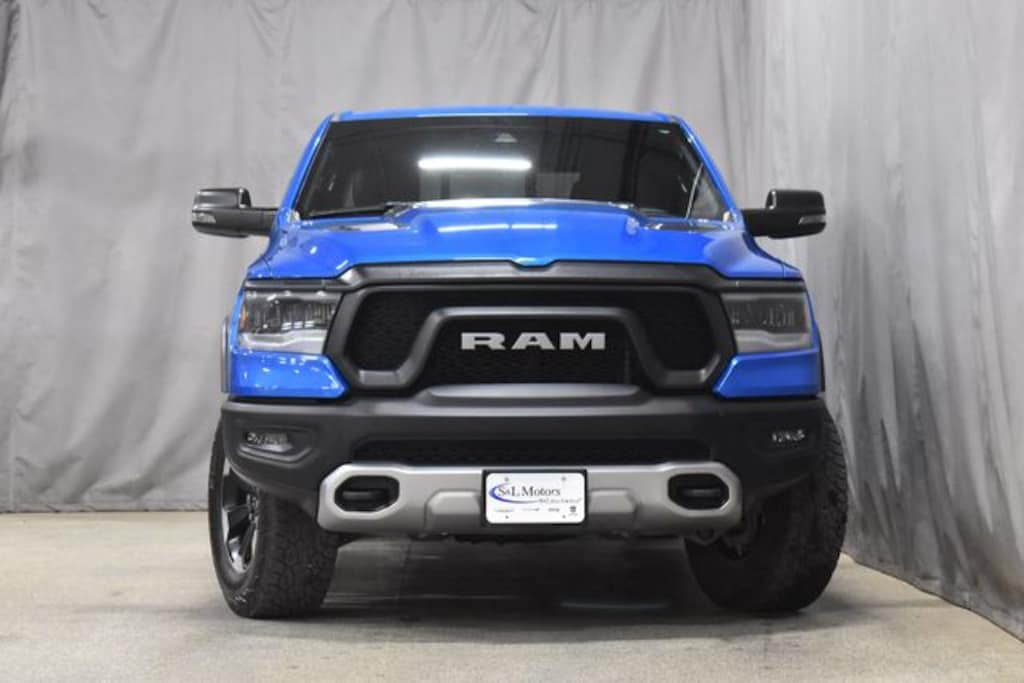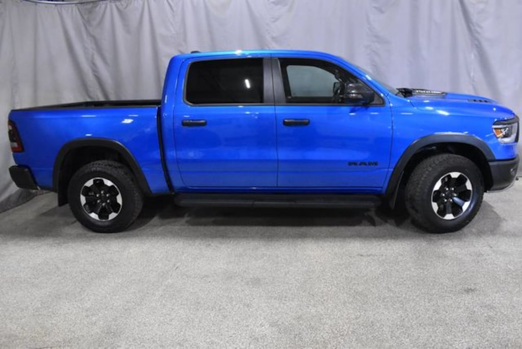 2023 RAM 1500 REBEL CREW CAB 4X4 WITH ONLY 27,335 MILES FINISHED IN STRIKING HYDRO BLUE PEARL OVER BLACK INTERIOR WITH RED ACCENTED SEATING THIS TRUCK COMMANDS ATTENTION WITH ITS AGGRESSIVE STYLE AND LEGENDARY CAPABILITY POWERED BY THE 5.7L HEMI V8 WITH ETORQUE AND MATCHED TO AN 8â"SPEED AUTOMATIC TRANSMISSION IT DELIVERS OUTSTANDING POWER SMOOTH PERFORMANCE AND IMPRESSIVE TOWING CAPABILITY