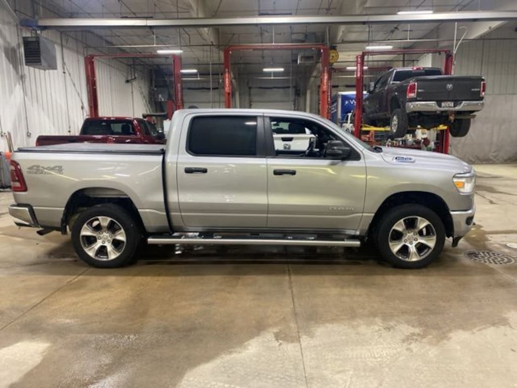 READY SOON!! RAM FACTORY CERTIFIED PRE-OWNED VEHICLE!! BILLET SILVER METALLIC 2023 RAM 1500 BIG HORN CREW CAB 4X4 WITH THE BIG HORN LEVEL 2 GROUP, FACTORY OFF ROAD GROUP, RAISED RIDE HEIGHT, E-LOCKER ELECTRONIC LOCKING REAR AXLE, SKID PLATES, TOW HOOKS, HEATED PREMIUM BUCKET SEATS, HEATED LEATHER WRAPPED STEERING WHEEL, 8.4" TOUCHSCREEN INFOTAINMENT CENTER, ALPINE 9-SPEAKER PREMIUM AUDIO SYSTEM, APPLE CARPLAY/GOOGLE ANDROID AUTO, SIRIUSXM SATELLITE RADIO, BACKUP CAMERA, PARKSENSE FRONT AND REAR PARK ASSIST, BLIND SPOT MONITORING AND CROSS PATH DETECTION, REMOTE START SYSTEM, REAR WINDOW DEFROSTER, SPRAY IN BEDLINER, TONNEAU COVER, INTEGRATED TRAILER BRAKE CONTROLLER, CLASS IV TRAILER HITCH, CLEAN CARFAX VEHICLE HISTORY AND THIS RAM 1500 IS A RAM FACTORY CERTIFIED PRE-OWNED VEHICLE WITH FACTORY CERTIFIED WITH FACTORY BACKED WARRANTY UNTIL JUNE 2029 OR 100,000 MILES!!