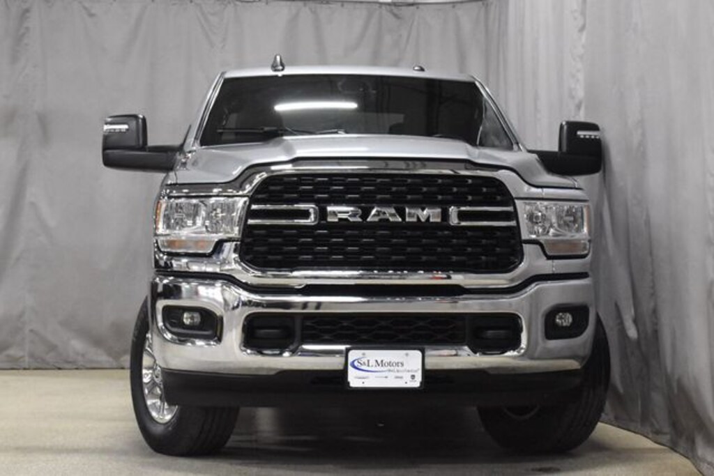 2024 RAM 2500 BIG HORN CREW CAB 4X4 WITH THE LEGENDARY 6.7L CUMMINS TURBO DIESEL AND LOADED WITH THE SOUGHT AFTER LEVEL 1 EQUIPMENT GROUP FINISHED IN BILLET SILVER METALLIC OVER BLACK AND DIESEL GRAY INTERIOR. THIS HEAVY DUTY DIESEL IS BUILT TO WORK HARD AND LOOK GOOD DOING IT WITH POWER TOWING TECH BIG CREW CAB SPACE AND MODERN CONNECTIVITY.