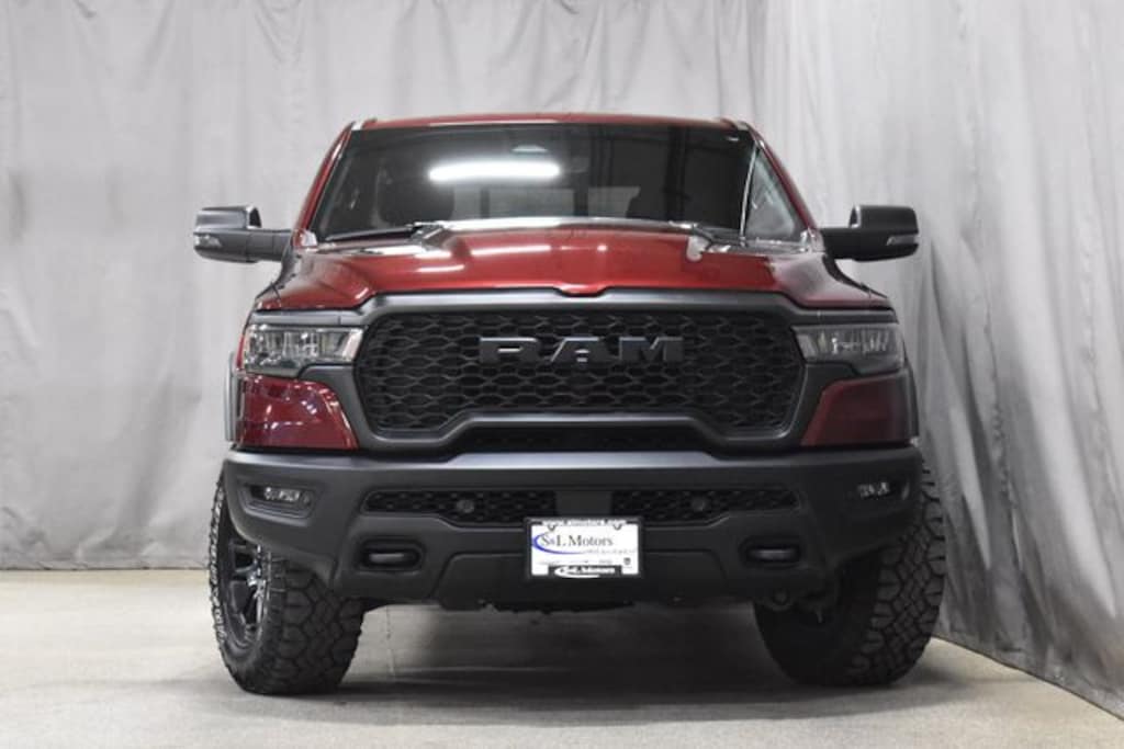 2025 RAM 1500 REBEL CREW CAB 4X4 IN STRIKING DELMONICO RED PEARL COAT WITH BLACK AND RED INTERIOR THIS REBEL BRINGS POWER LUXURY AND AGGRESSIVE STYLE IN ONE INCREDIBLE PACKAGE EQUIPPED WITH THE HIGH OUTPUT 3.0L HURRICANE TWIN TURBO I6 ENGINE AND 8 SPEED AUTOMATIC THIS TRUCK DELIVERS SERIOUS PERFORMANCE AND TORQUE WHILE MAINTAINING IMPRESSIVE EFFICIENCY THE REBEL OFF ROAD DNA IS HERE WITH ELECTRONIC LOCKING REAR AXLE PERFORMANCE TUNED SHOCKS SKID PLATES SELECT SPEED CONTROL AND AGGRESSIVE ALL TERRAIN TIRES THIS TRUCK IS BUILT FOR REAL WORLD ADVENTURE ON AND OFF THE ROAD