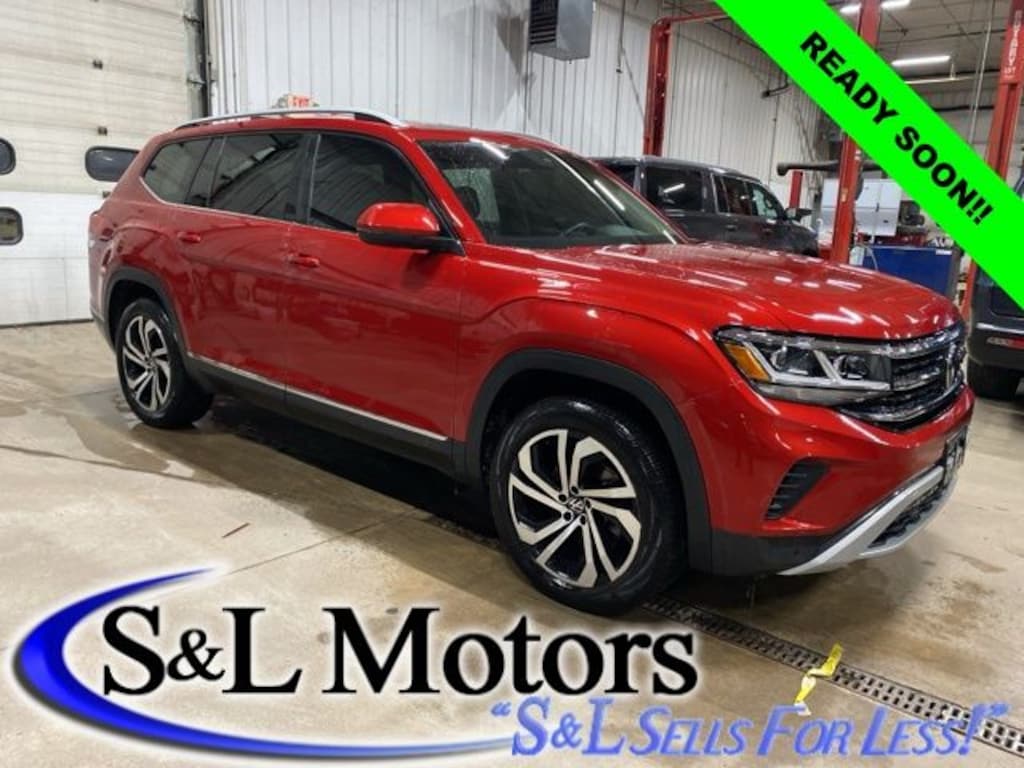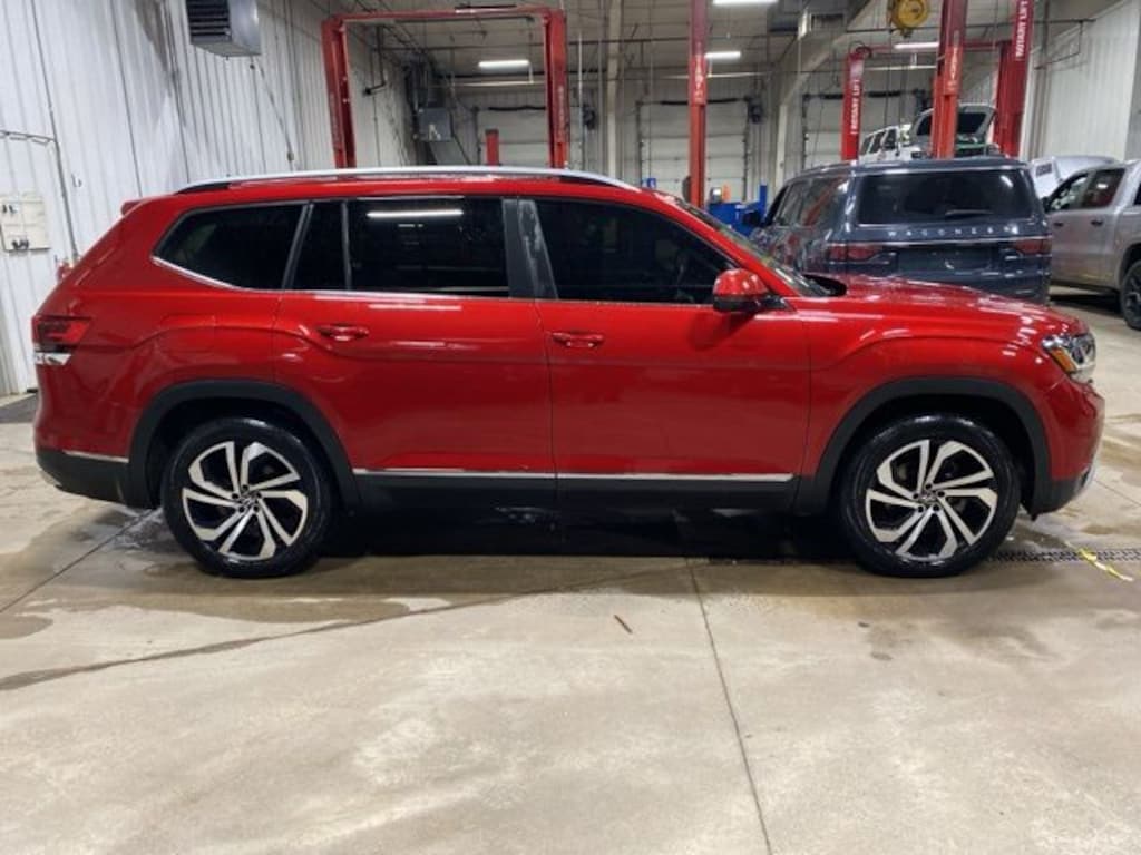 READY SOON!! DUAL PANE POWER MOONROOF!! VERY CLEAN RECENT TRADE IN!! AURORA RED METALLIC 2022 ATLAS 2.0T SEL ALL WHEEL DRIVE WITH HEATED LEATHER BUCKET SEATS, 2ND ROW CAPTAIN CHAIRS, POWER DRIVER AND PASSENGER SEATS, HEATED LEATHER WRAPPED STEERING WHEEL, 8" TOUCHSCREEN INFOTAINMENT CENTER, AUTO TEMPERATURE CONTROLS, REMOTE START SYSTEM, POWER LIFTGATE, 20" BLACK/MACHINED ALUMINUM WHEELS AND A CLEAN CARFAX VEHICLE HISTORY REPORT!!